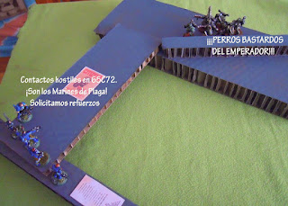 Para el sábado 13 nos montamos una partida en Zona Mortalis a tres bandas ya que no encontramos un cuarto jugador para hacer un 2vs2 que era nuestro plan inicial. El caso es que para darle “ salsa” a la partida y que al ser a tres bandas no tuviese excesivo peso en la campaña decidimos tirar de EVENTO, y delegaron en mi crearlo. La idea es que no fuese muy cañero por lo que decidimos que no se jugaría en ningún planeta y al ser Zona Mortalis eso solo nos dejaba unos tuneles en una Estación Espacial. Tirando de ahí se me ocurrió que debía ser una Estación Espacial Artillera, la Muerte Celestial  Así que el EVENTO en sí sería que el bando del jugador que ganase la partida tendría una sola vez en la ronda de enero la posibilidad de tener un Bombardeo Artillero como el descrito en el codex marines con las siguientes condiciones: Solo un Bombardeo en toda la ronda Se decidiría antes de desplegar si se utlizaria o no, aunque después de saber la misión y los rasgos del SdlG. Se tiraría un 1d6 para saber en qué turno caería el bombardeo: - Con 1 al 5 sería en el turno indicado - Con 6 se tiraría al acabar el despliegue, incluyendo movimiento de exploración e infiltración. Como íbamos a jugar dos malosos y un neutral, Will se ofreció para jugar con sus Marines Espaciales en nombre de los imperiales, por lo que si ganaba él los buenos ganarían el bombardeo. Además para dar cierto toque cuarentamilero clásico, al final de cada turno se tiraría 1d8, y según el resultado saldría 3+1d6 Genestealers. Según el resultado del 1d8 saldrían por la compuerta correspondiente distribuidas de dos en dos por cada lado del tablero. La "Muerte Celestial" será de Nurgle muahahaha