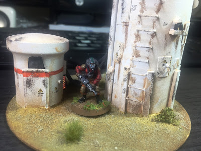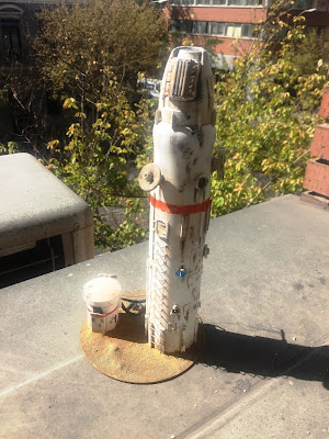Pues fantásticamente Suber, el color blanco base con los detalles que le has metido y todo el óxido y desgastes te ha quedado de lujo. Planteate hacer alguna cosilla mas siguiendo el mismo estilo de pintura, estoy seguro que para una base espacial o algúna zona fronteriza abandonada puede quedarte de lujo.  :ss