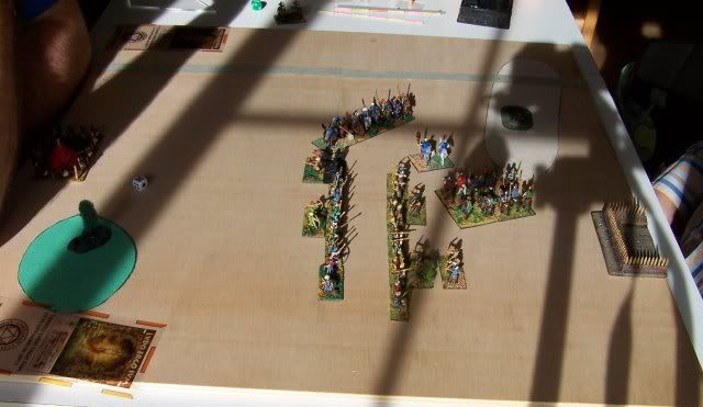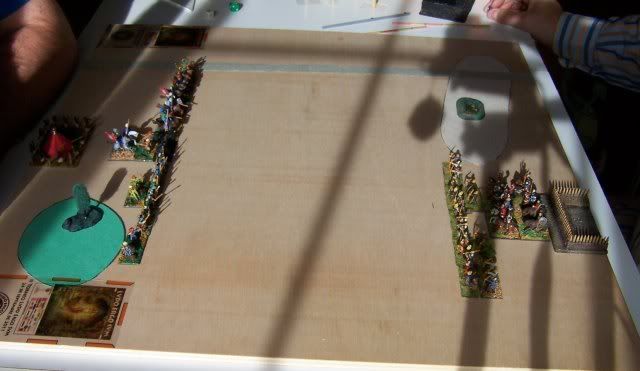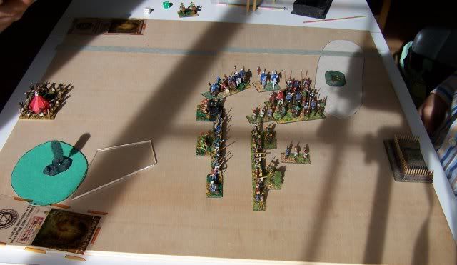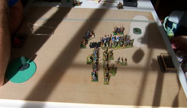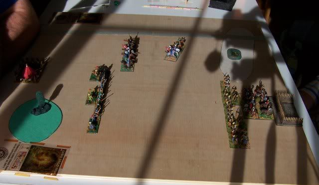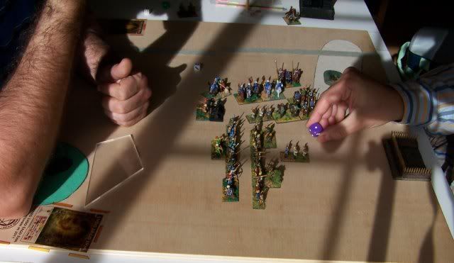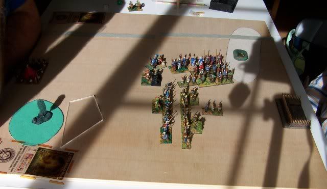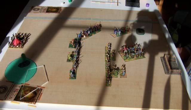 Aquí va un informe (aunque las fotos tienen sombras excesivas cuando salía el sol) de las dos batallas que jugamos intercambiando los ejércitos.