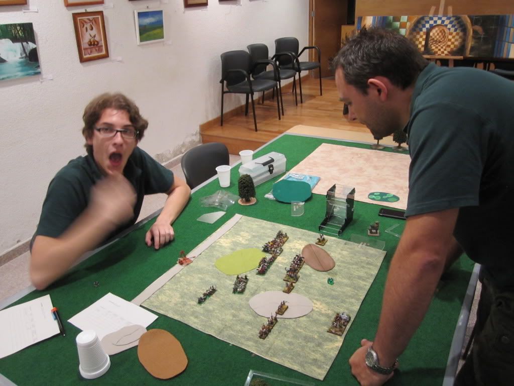 Muy buena pachanga , para ser la primera no está mal 2 ganadas y 3 perdidas .La única pega es que me hubiera gustado tambien jugar contra Miravant ,Baltasor y los demás , en fin ,otra vez será. A destacar la última partida donde acostumbrado a los campos de golf "sir Galdarauch" me desquició un poco metiendo mucho terreno dificil y bosques , total al final me apalizó con sus warbands. Espero que nos volvamos a ver pronto!!! :cc para todos!!!