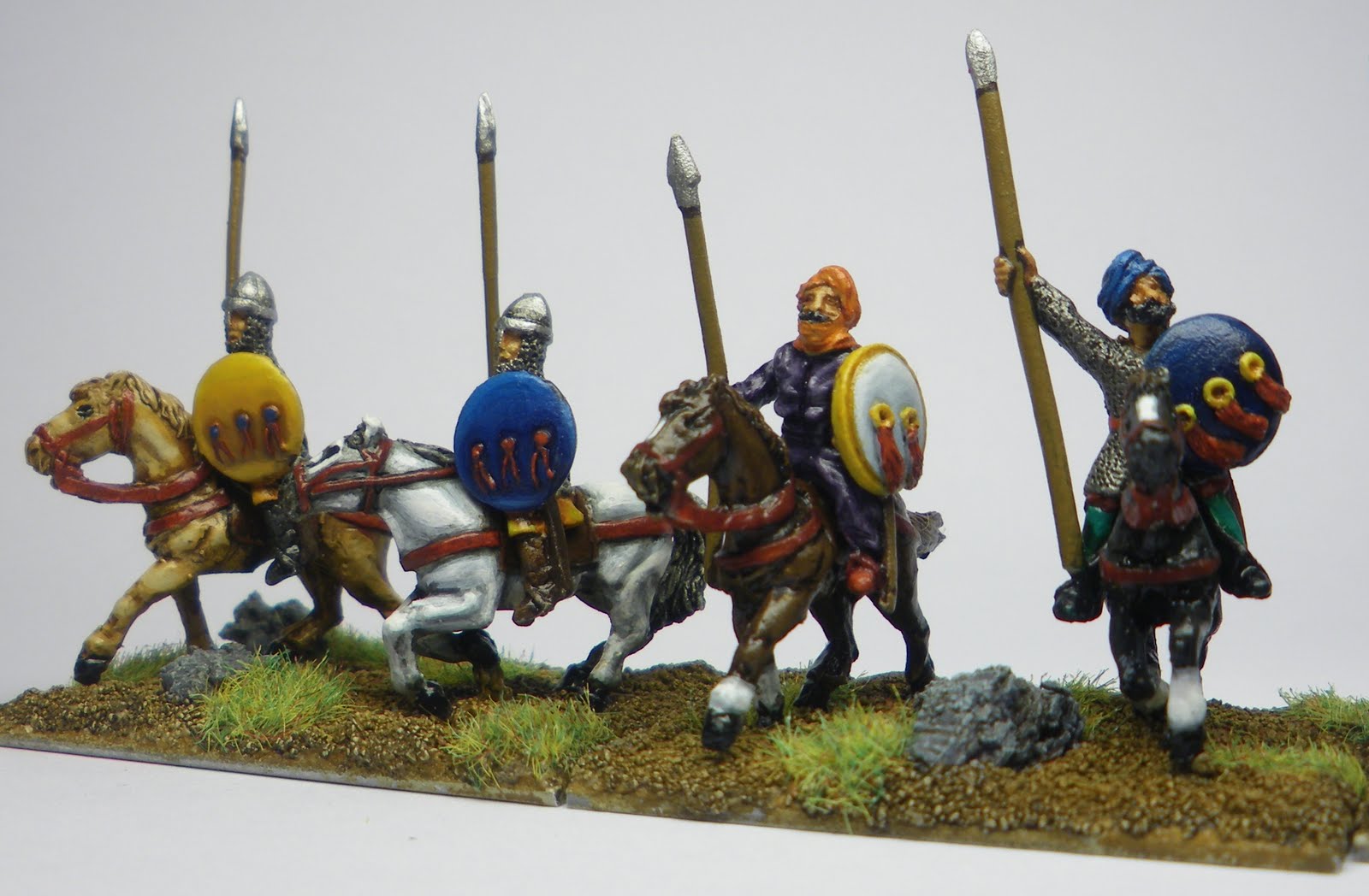 En estas fotos puedes ver un ejemplo de miniaturas de ATF, (los que llevan armadura y cásco cónico) pintadas. Corresponden a la última referencia de la 1º foto (52). Como puedes ver, su mayor problema es la de que las lanzas se doblan demasiado, incluso un poco más que otras casas. Xyston lleva de acero por lo que no se dobla.