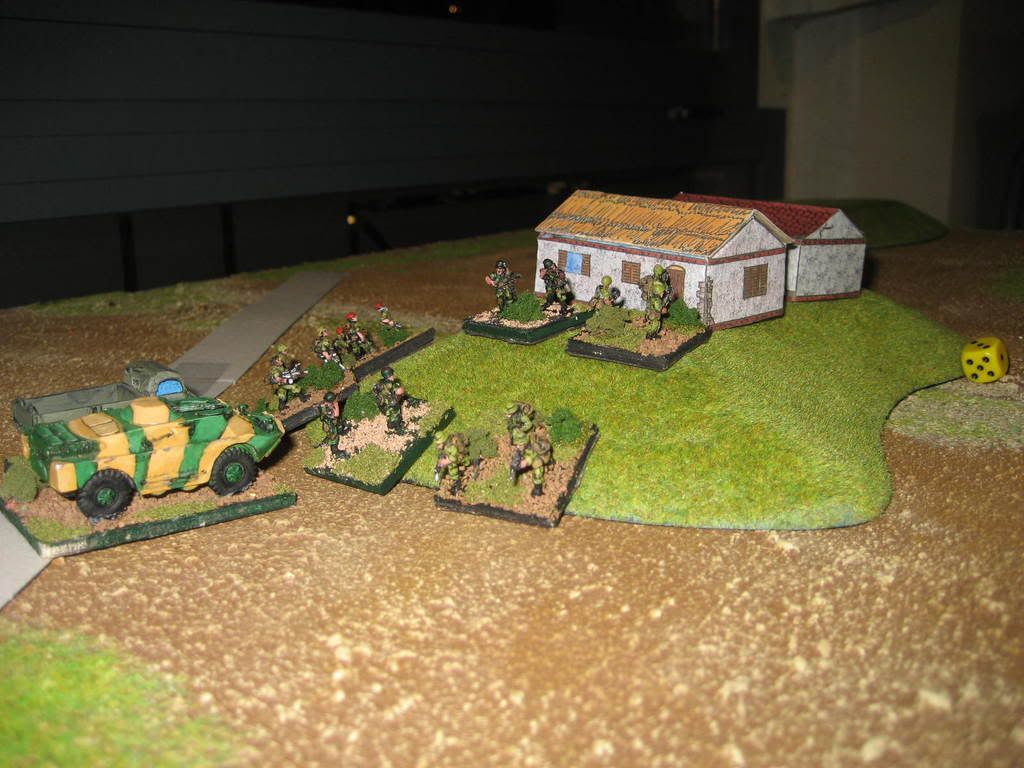Mis regulares entraron a sangre y fuego en el objetivo, y consiguieron hacer huir a los americanos allí acantonados, pero sirvió de poco, porque luego vinieron tropas de refuerzo americanas que me hicieron salir del objetivo y posteriormente aterrizaron los Delta Force de Marc (bastante tarde) y arrasaron con mis tanques y mis tropas.