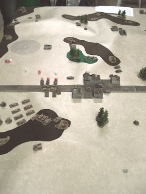 A pesar de las horrendas bajas (David me ha matado 14 elementos y yo le he matado 5....) he conseguido conquistar los 2 objetivos y mantenerme atrincherado en ellos hasta el final, lo que me ha dado la partida por 2 a 1. Eso se ha debido en buena parte a que los Saudíes herejes de Baltasor ha decidido que era la hora del té y no se han movido durante 2 turnos, permitiéndome ocupar los objetivos sin oposición apenas. :D :D