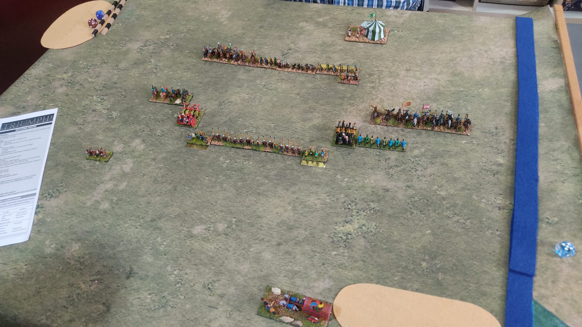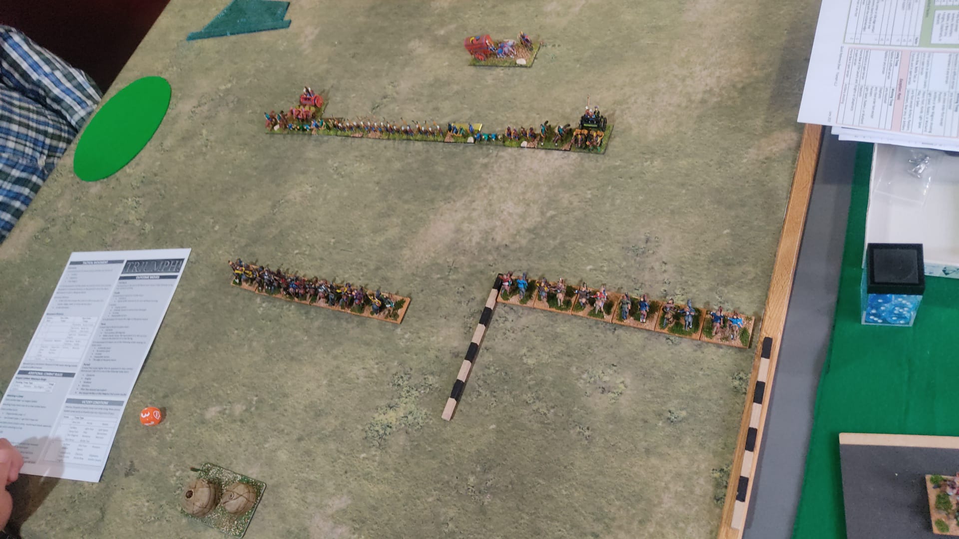Dos instantaneas de dos partidas de primera toma de contacto con Triump! 15mm en el club de @erikelrojo