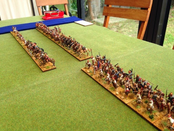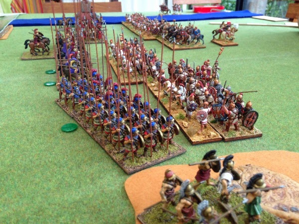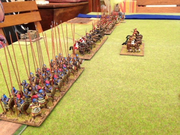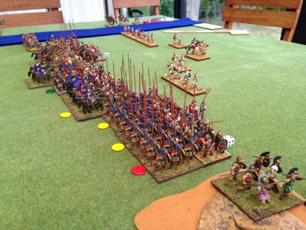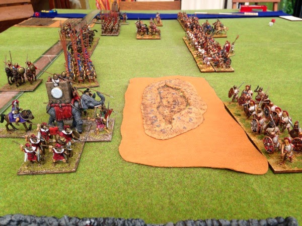 Tambien podeis apreciar el despliegue muy compacto de ambos bandos ... bueno, el Ibero llevaba 32 peanas !! y toda su infanteria pesada impetuosa iba cubierta por una linea de caetratii ...