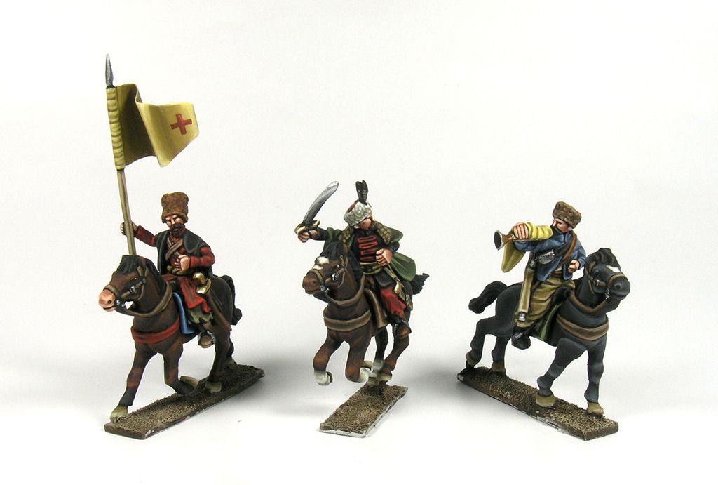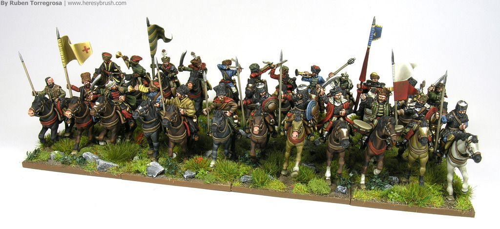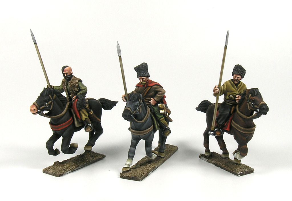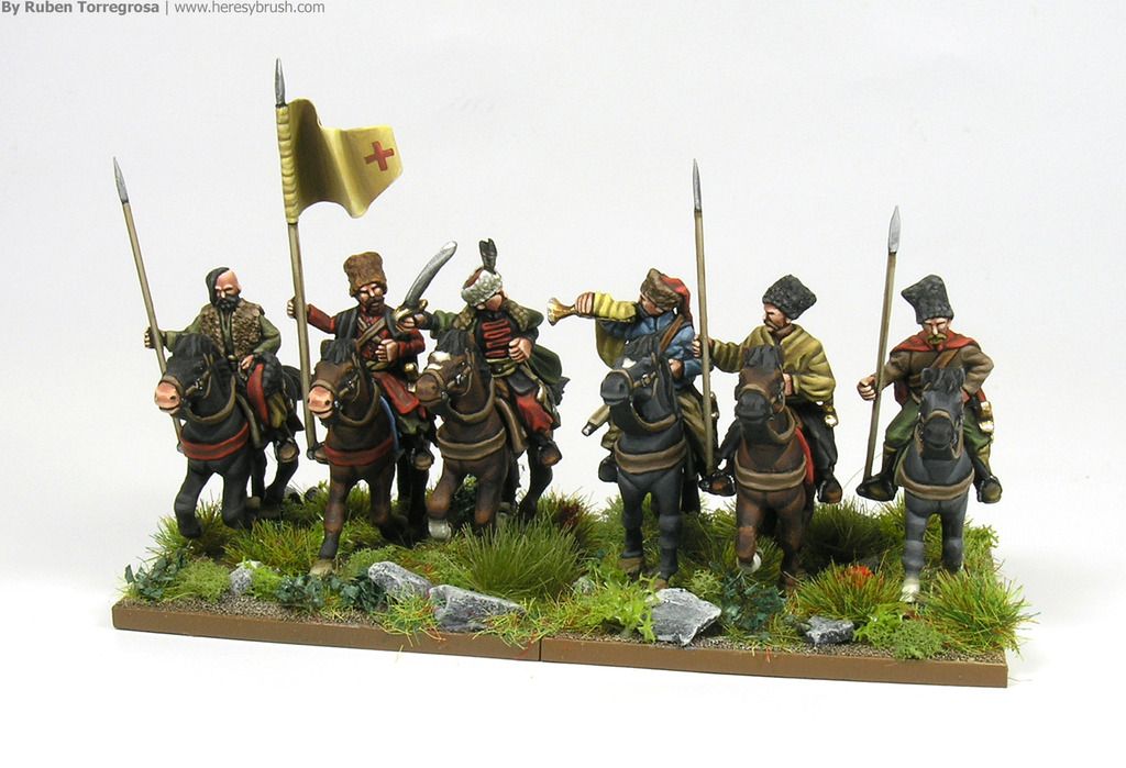 Aquí tarigo más miniaturas a caballo...otra unidad de cosacos del periodo de la Guerra de los Treinat Años. Esta vez, caballería ligera.