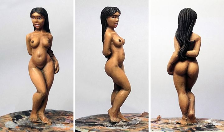 Y sí, lo que he pretendido al pintarla ha sido resaltar el aspecto de virginal belleza e  inocencia que ya poseía la figura original (obra de Kev White). Quitando el toque perverso de la puñetera argollita en el pie, claro.