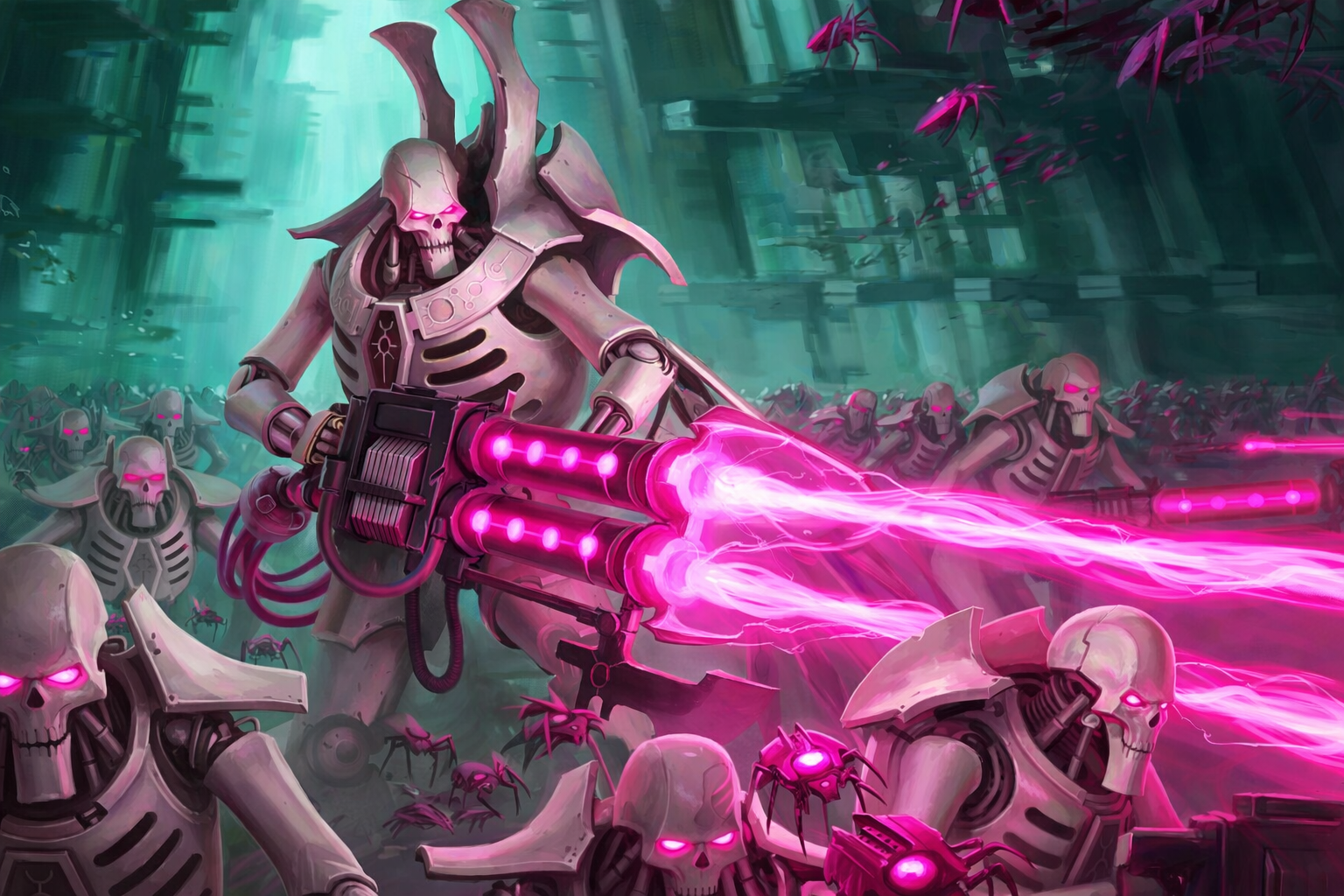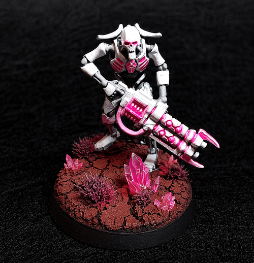 En cuanto al esquema de color, me parece muy astuto eso de dejarlos en blanco para ir ultrarrápido. Con los necrones funciona casi cualquier color.