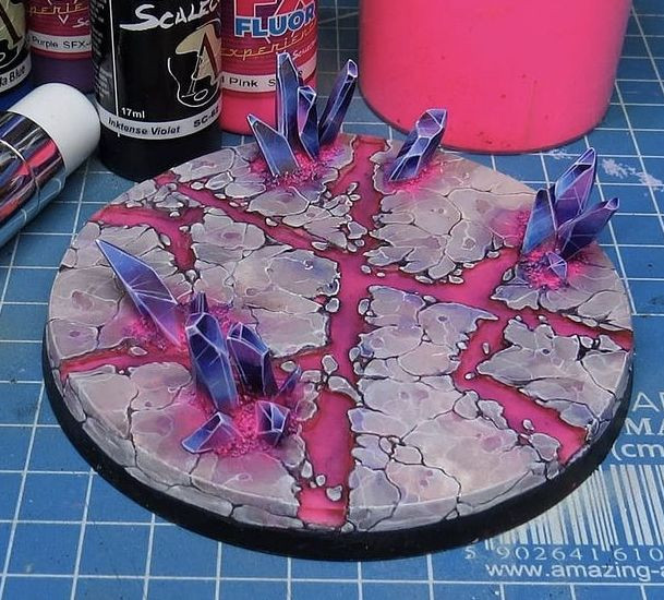 Sin embargo, estoy con Koniev: quedaría mejor un tono neutro en la peana. Máxime si piensas jugar con ellos (a menos que te apetezca poner suelo rosa en el tapete y en las peanas de todos sus enemigos).
