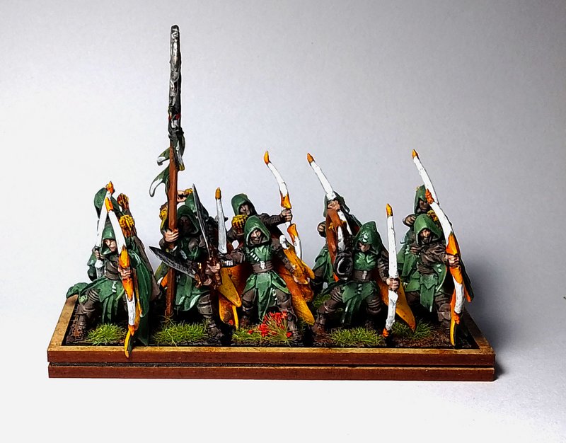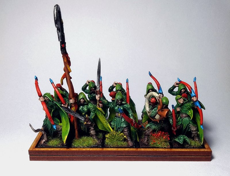 Tengo otra unidad de guardia del bosque empezada pero no se si seguir el mismo esquema de color o variar y pintarla con algunos colores similares pero haciendo cambios.