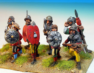 En lso escudos utilizados hay de todo: algunos son de Foundry de la colección de los Conquistadores. Otros son hechos por mí. En las adargas, lo mismo, algunas son de las propias figuras (algunas figuras de Essex); otras son de Redoubt; y otros son hechos por mí o transformados de modelos de marcas.