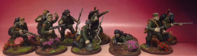 Tres regimientos con NCO, siete rifles, y LMG.