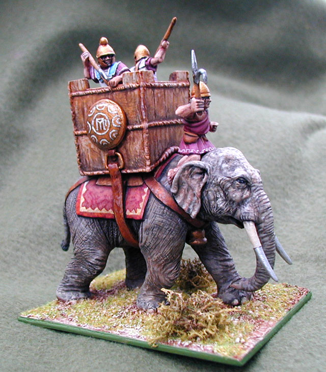 CitarSome of Pyrrhos troops were Macedonian Pikemen, so they should probably have the Macedonian star, or maybe the star with surround. He also seems to have armed some of his own Epirots with pikes. Perhaps, these troops'shields should be enblazoned with his famous epigram and surround. It can be found in AMPW 40e. Other than this possible difference, they were not unlike other hellenistic pikemen in dress. Dionysios of Hallikarnassos mentions mentions one of Pyrrhos'Companion Cavalry having a dun cloak and AMPW seems to guess that this with a white tunic may have been uniform for this unit. Pyrrhos'own helmet was claimed to have a white crest and two goat horns. AMPW offers a version of this in 34a. At Heraclea, after almost being killed by a Roman officer, Pyrrhos is said to have exchanged his gold-edged purple cloak, ornate armor, and elaborate helmet for a dun cloak, plain curaiss, and felt kausia (Macedonian style hat) from one of his Companions. The kausia could have been purple since these were often given as rewards by Macedonian-style Hellenistic kings. This use of Kausia in battle may indicate that Pyrrhos'companions were not uniformly equipped. For the most part his troops should be Hellenistic Greeks in appearance with the same colors and equipment favored by such armies. He will not have Prodromoi, since these lance armed light cavalry were unique to the Macedonians. He could have, in the second option for his army, shielded ("Aspis"-Hoplite shield) light cavalry in crested attic helmets and simple tunics armed with javelins (usually referred to as Tarrantines).