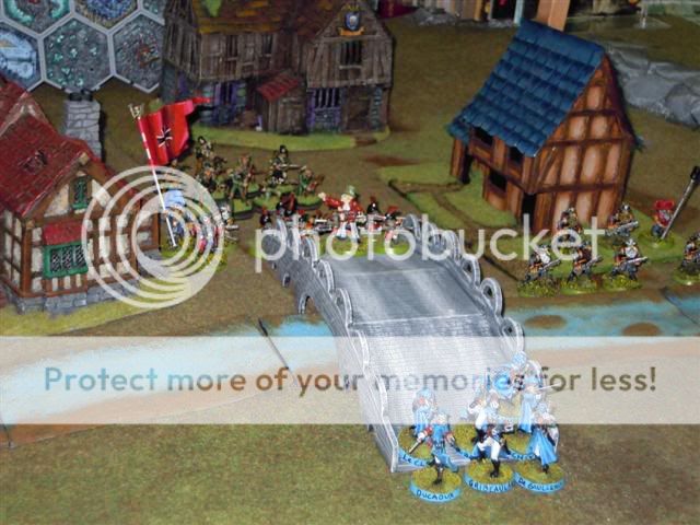 La infanteria francesa contra su costumbre continua su avance "en linea", en vez de "en columna" o en "orden mixto". "Hay Peltasta mucha victoria, pero un poco de documentacion historica no vendria mal" :P