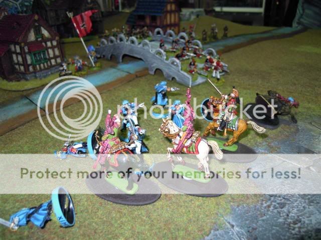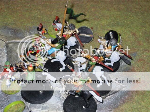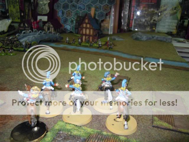 Los enanos son prusianos de la milicia Landwher (o como demonios se escriba)de la marca Flintloque, como se enteren que se les confunde con los franceses... ;). Los caballos son los de los "jinetes de Rohan" del Señor de los Anillos, tambien como se enteren que has llamado a los "mearas" (no me acuerdo como se llamaban) ¿ponis!... >:(
