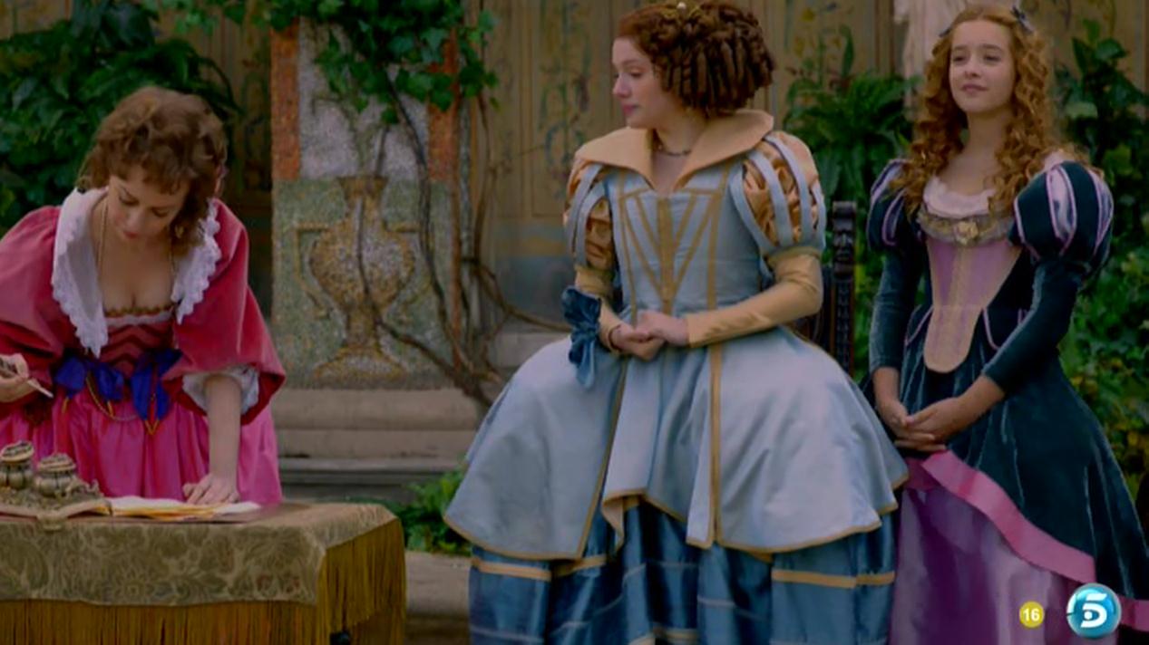 Ejemplo de vestuario. A algunos les chirriará, a otros les parecerá Carnaval, otros lo verán adecuado tratándose de Damas de la Corte... A gustos.