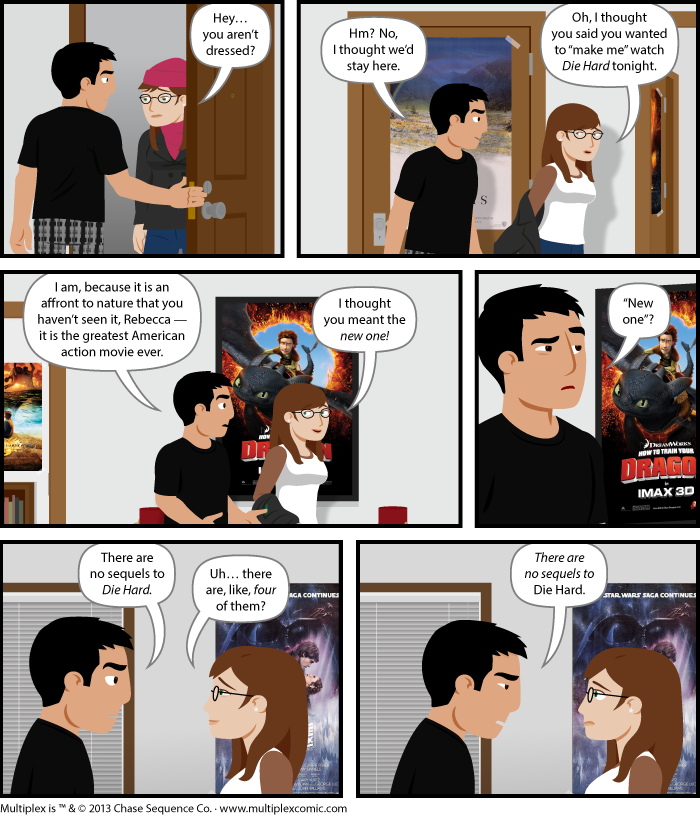 Muy mal que McClane dice su frase pero no justo antes de matar al malo, tch tch.