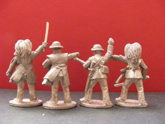 Este será el primer pack que vera la luz y que estará disponible en dos o tres semanas aproximadamente. Como podéis ver esta compuesto por cuatro miniaturas, dos oficiales y dos suboficiales. El oficial y el suboficial con esa "gran peluca" son específicos de tropas leales al Emperador, mas en concreto de los clanes Tosa, Choshu y Satsuma. Las otras dos podrán ser empleadas por ambos bandos.