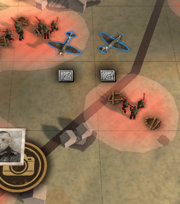 -Las unidades enemigas son reveladas, volviéndose visibles para ti en el mapa. Incluso se pueden detectar los depósitos de suministros enemigos desde el aire, lo que te permite planear capturarlos en futuras ofensivas.