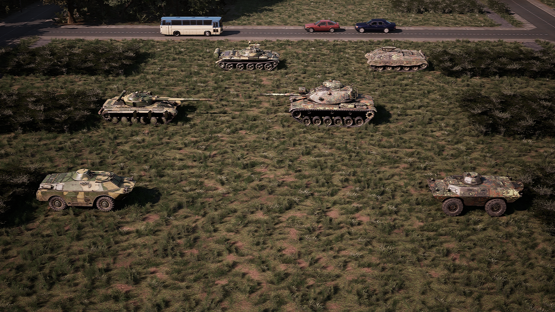 En segundo lugar, intentamos buscar unidades que tengan adversarios algo similares en el otro bando. Por ejemplo, si añadimos un tanque pesado de la OTAN, investigaríamos los tanques pesados de la URSS para buscar algo al menos remotamente similar. Aunque en el caso de la era de la Guerra Fría, predominaban los tanques de combate principales (MBT), en lugar de la clasificación de ligero/medio/pesado del período de la Segunda Guerra Mundial. Aún así, en caso de cualquier clase o tipo de unidad, intentaríamos encontrar su "versión espejo" en la facción opuesta, incluso si no son muy parecidos en términos de parámetros de combate. Lo fundamental es que cumplan el mismo rol de combate en el campo de batalla.