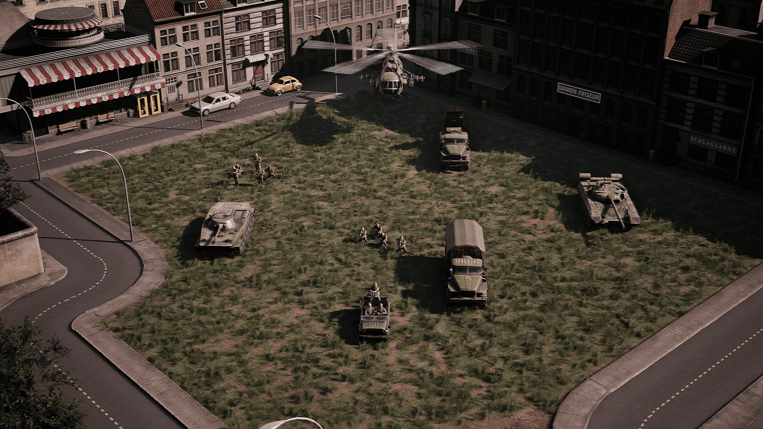 Mientras que en Headquarters: World War II las unidades AA se usaban para defenderse de las habilidades de los cuarteles generales enemigos y, de hecho, disparaban principalmente contra unidades terrestres como apoyo de fuego adicional, en Headquarters: Cold War tienen un papel mucho más importante al enfrentarse también a las unidades de helicópteros enemigos. Si leíste nuestro diario de desarrollo anterior, probablemente te habrás dado cuenta de que las unidades de helicópteros cambian las reglas del juego. Por lo tanto, no se puede ignorar la amenaza que representan, lo que significa que se prestará más atención a su contraparte: las unidades antiaéreas. Además de las conocidas ametralladoras y cañones automáticos, introducimos las unidades antiaéreas basadas en cohetes (o SAM - misiles tierra-aire), que solo pueden atacar objetivos aéreos pero destacan en esa tarea.