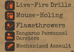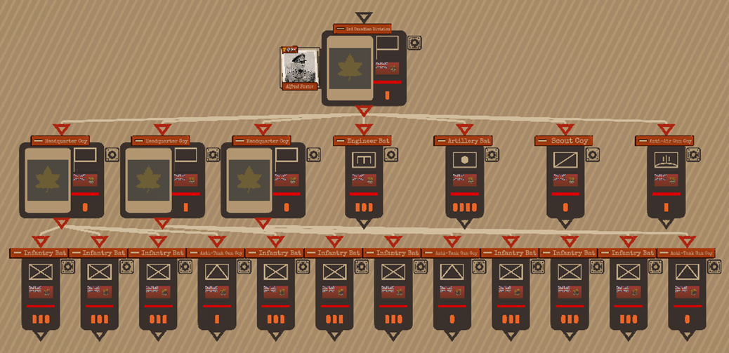 Una formación no puede desplegarse en una misión a menos que esté liderada por una Compañía de Cuartel General con un oficial asignado. Las compañías de cuartel general no están diseñadas para el combate. Tienen potencia de fuego y defensa reducidas, e intentarán retirarse y replegarse si son atacadas.