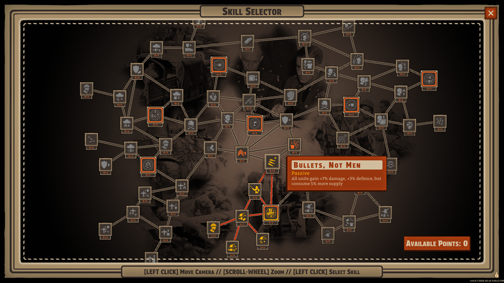 Las habilidades se eligen de la RED DE HABILIDADES. Esta red es un grafo de nodos interconectados, divididos aproximadamente en las siguientes áreas: habilidades de Infantería, habilidades de Blindados, habilidades de Artillería y Armas de Apoyo, habilidades de Apoyo Aéreo y habilidades generales.