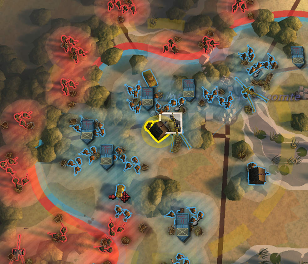 Para realizar una habilidad activa, la compañía del Cuartel General debe desplazarse físicamente a la zona designada, lo que la expone al fuego enemigo. ¡Liderar desde el frente puede ser peligroso!