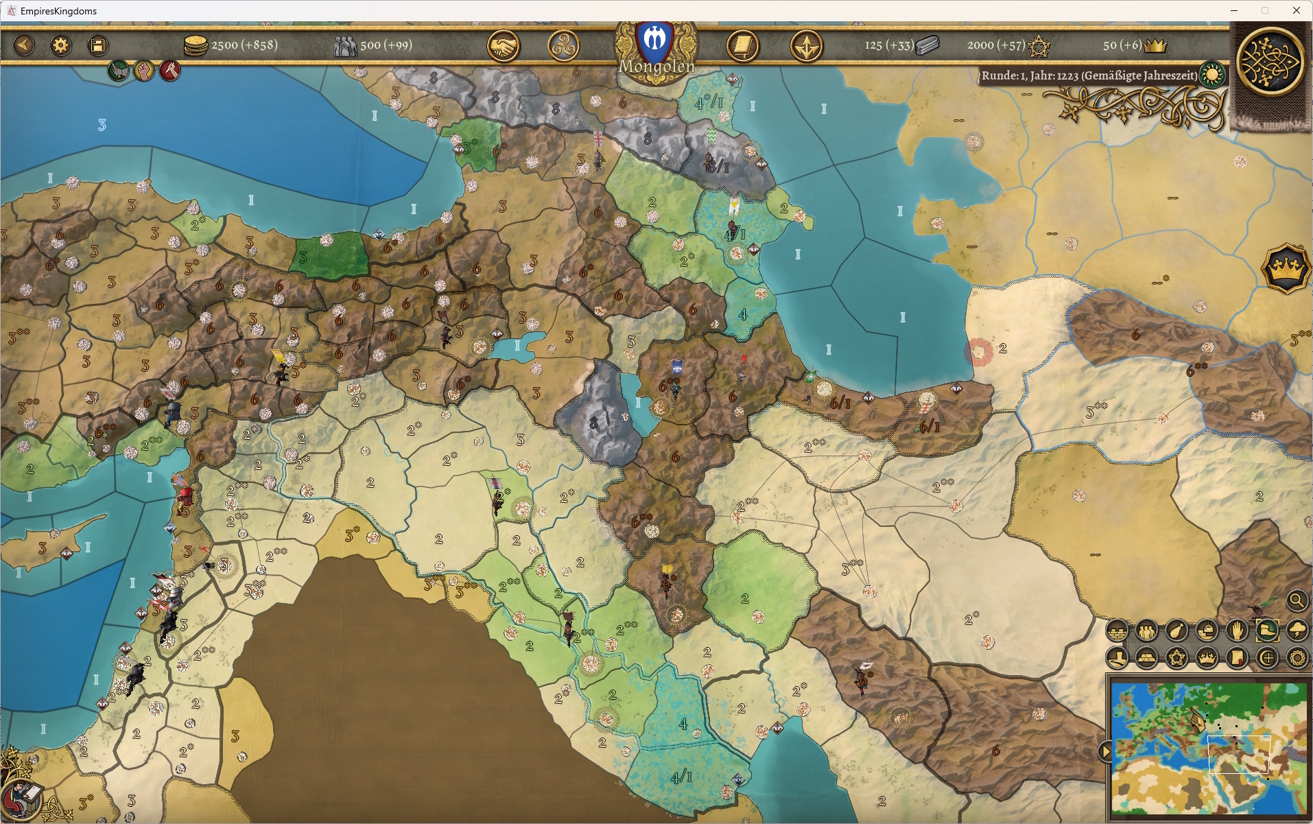 La expansión mongola constituye el principal impacto estratégico de este período. Sus ejércitos arrasan las estepas orientales y amenazan gran parte de Eurasia. Tendrás que prepararte para este impacto brutal, o aprovecharte de él. Varias naciones existentes tienen situaciones iniciales revisadas para reflejar mejor este nuevo equilibrio de poder. Inglaterra, Francia, Hungría, Polonia y el Sacro Imperio Romano Germánico se enfrentan a nuevas presiones estratégicas, y muchas facciones reciben ventajas (perks) nacionales nuevas o ajustadas.