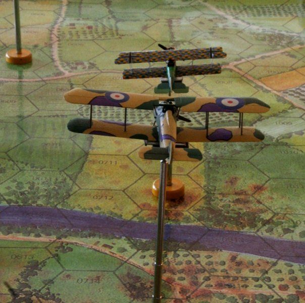 A mi me parece un juegazo, tanto el Blue Max como el Canvas Eagles. Tengo ambas ediciones y la nueva me parece muy buena. Hace unos años (unos cuantos ya) me imprimí en dos secciones un tablero de 2mx2m con un escaneado del tablero del "Knight of the Air" de Avalon Hill y le metí maquetas de aviones de la IGM. Lo paseé por varias jornadas de rol donde la gente se quedaba con ello por ser tremendamente vistoso. Usaba las antiguas reglas del Blue Max y unas antenas telescópicas para las alturas de los aviones. Aquí os dejo con una foto que saqué una vez