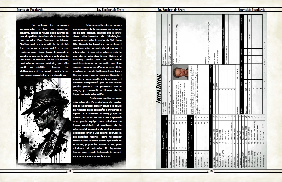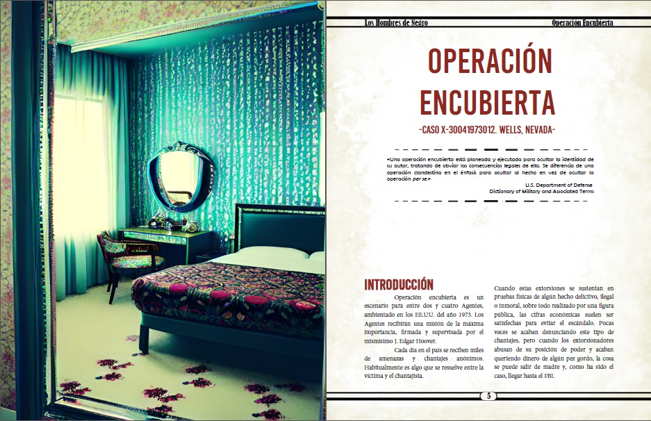 Operación encubierta es un escenario para entre dos y cuatro Agentes, ambientado en los EE.UU. del año 1973. Los Agentes recibirán una misión de la máxima importancia, firmada y supervisada por el mismísimo J. Edgar Hoover.