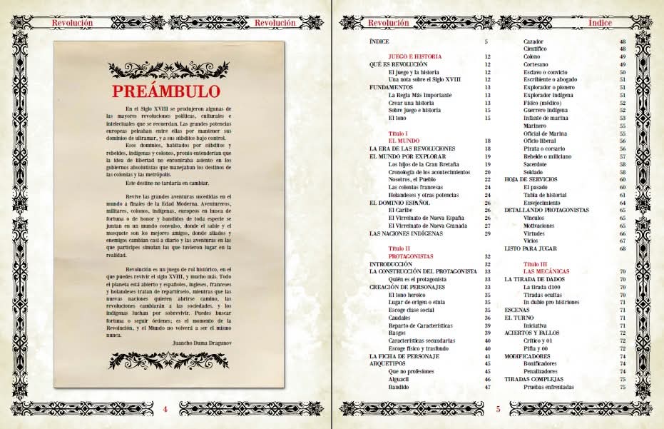 Un título de ambientación general que te sitúa en la era de las Revoluciones: Los hijos de la Gran Bretaña, una cronología de los acontecimientos, los EE.UU., las colonias francesas y el monstruoso dominio español; el Caribe, el Virreinato de Nueva España, el Virreinato de Nueva Granada y las orgullosas naciones indígenas.