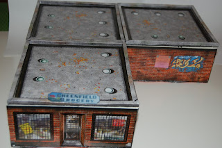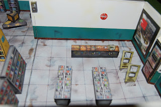 Desde la última partida de nuestra campaña se me había pasado mostrar el último edificio que había preparado, y que tenía bastante protagonismo en el escenario (aunque no el que esperábamos  ::) ). Se trata de un pequeño supermercado de barrio al que los protagonistas acuden en busca de víveres.