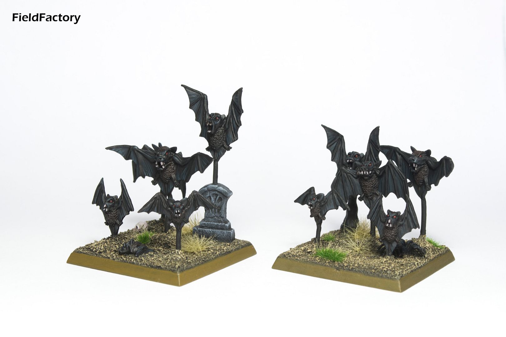 Hace un tiempo me puse con un par de bandadas de murcielagos de las viejunas de games workshop, como son de segunda mano estaban un poco destrozadas con algun soporte roto, asi que les he metido un poco de restauración y alguna tonteria como la lapida para darles un poco de gracia. Espero que os gusten: