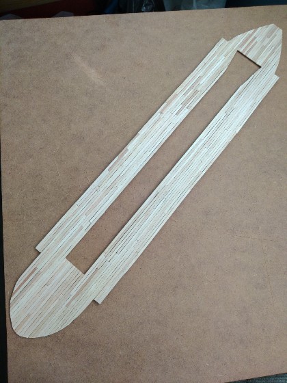 Las láminas de madera de balsa pegadas escalonadas hacen las veces de perfil redondeado (ya que nuestro modelo no es una verdadera maqueta de modelismo naval con tracas y demás): (013)