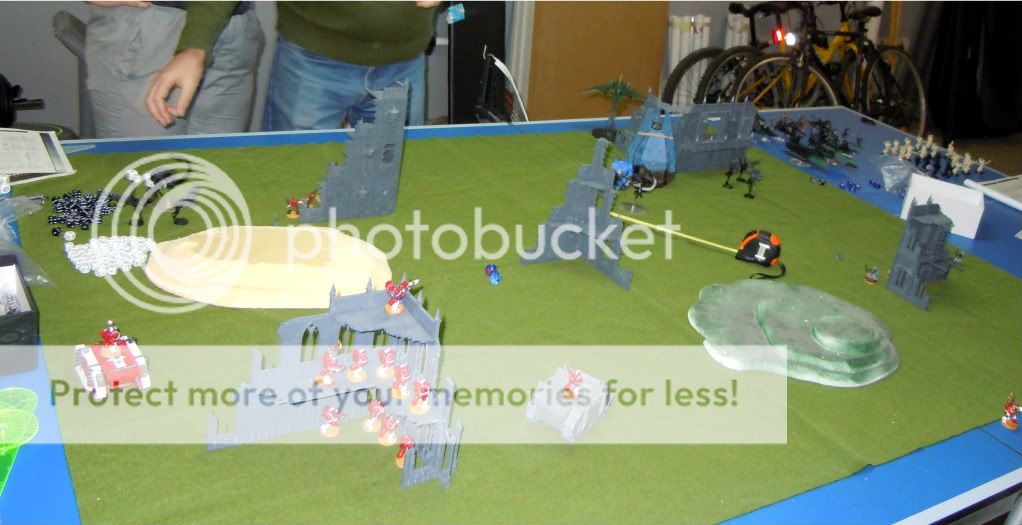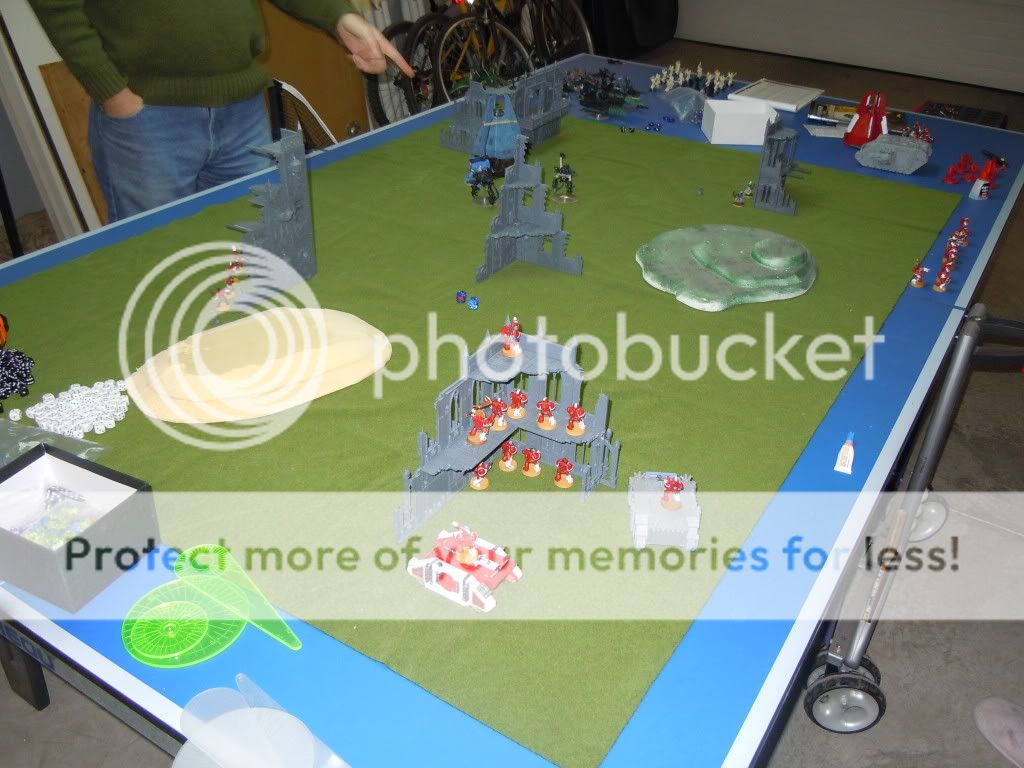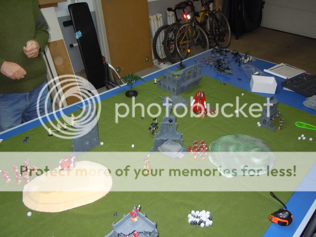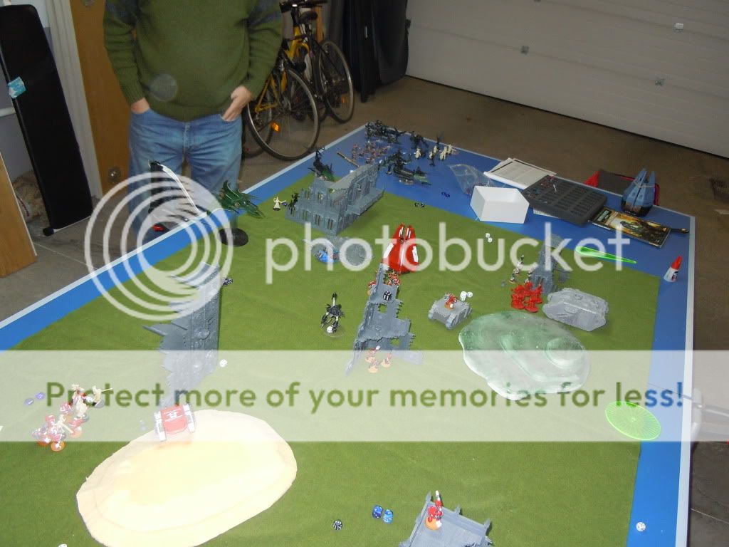 Una pequeña batalla en el garaje entre buho (Eldar Oscuros) y yo (Marines).