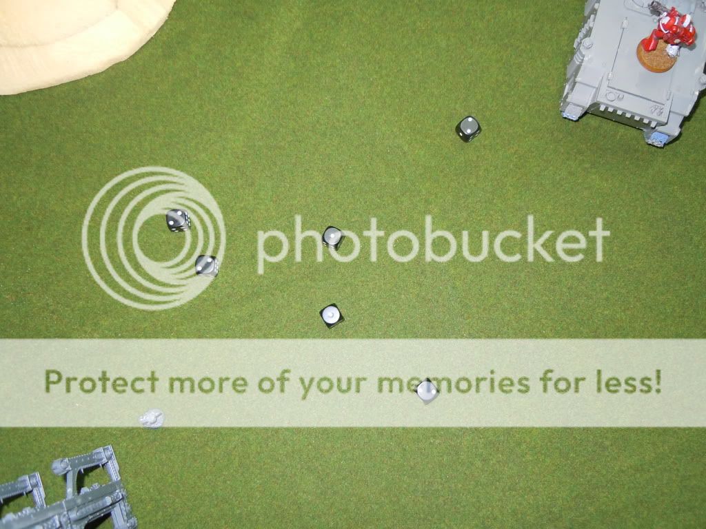 Los marines de ambos rhinos desembarcan y hacen llover munición bolter sobre las unidades enemigas. El resultado final es de 5 atormentados muertos por un lado y la unidad de motos al completo por el otro.