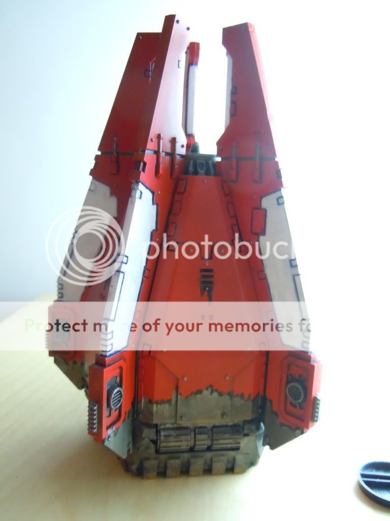Al margen del pintado me surge una duda en cuando a las cápsulas de desembarco. Es una estupidez pero supongo que sufren la entrada en la atmósfera de cada planeta "asaltado" o "intervenido" por el capítulo y el consecuente impacto contra la superficie, ¿no?  De entre todos los vehículos de un capítulo creo que son los más castigados más allá del daño de combate así que incluso podría decirse que tu cápsula está muy bien tratada.