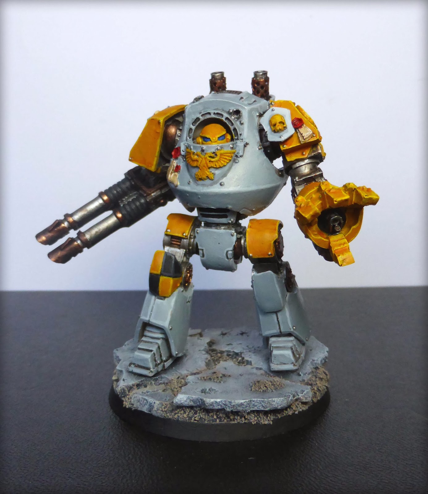 La última incorporación de los Guanteletes es este Contemptor al que he puesto imanes para poder  intercambiar las diferentes armas. Es la primera vez que hago esto con una miniatura y la verdad es que ha resultado muy fácil y útil.