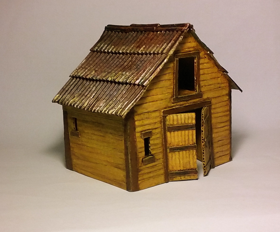 como anoche me vine arriba, aproveché los recortes de la construcción principal y me curré con las mismas técnicas  mas cositas.....una pequeña cuadra y una letrina o caseta de aperos ........