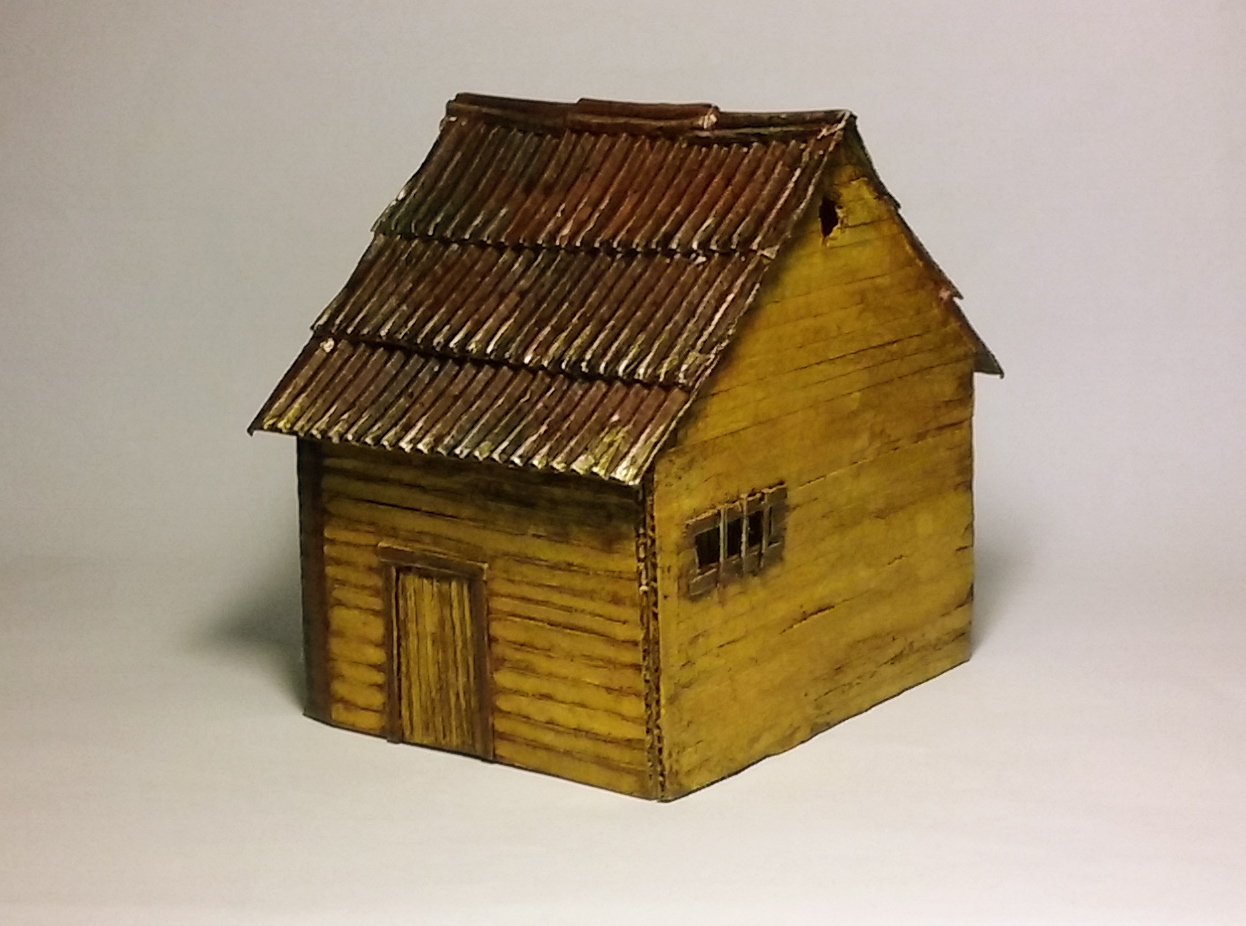 hace poco en un post del foro, hablaban sobre unas nuevas láminas de plástico que se usan para hacer tejados........recordando como se hacían antes, usando el cartón grueso corrugado, me picó el gusanillo y me puse manos a la obra, en mi noche de descanso....tardé aproximadamente dos horas y media en construir todo lo que veréis (pausa de la cena x medio y fumo...mas pausas....)