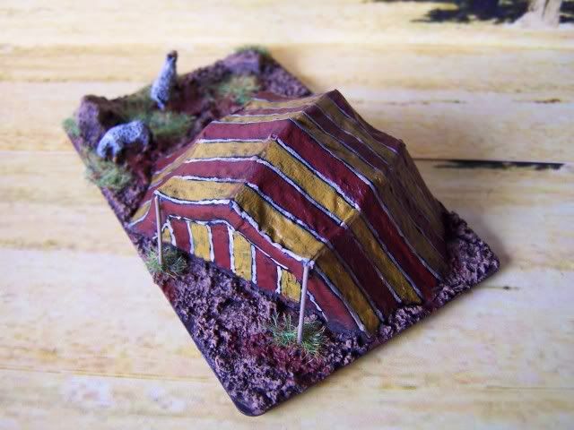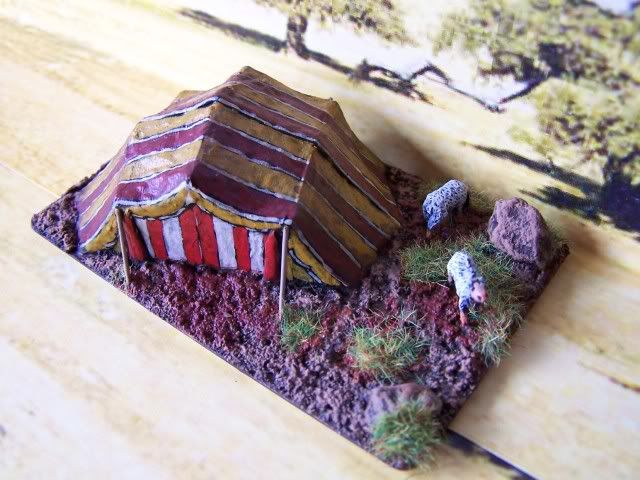 El campamento (con aire navideño, tienda de pastores con ovejitas, valdría para el belén):