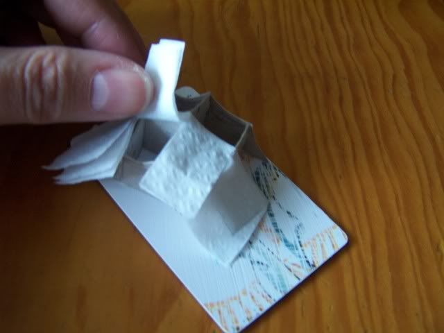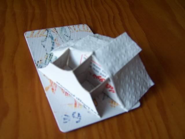 La tienda está hecha con una estructura de cartón y servilleta de papel.