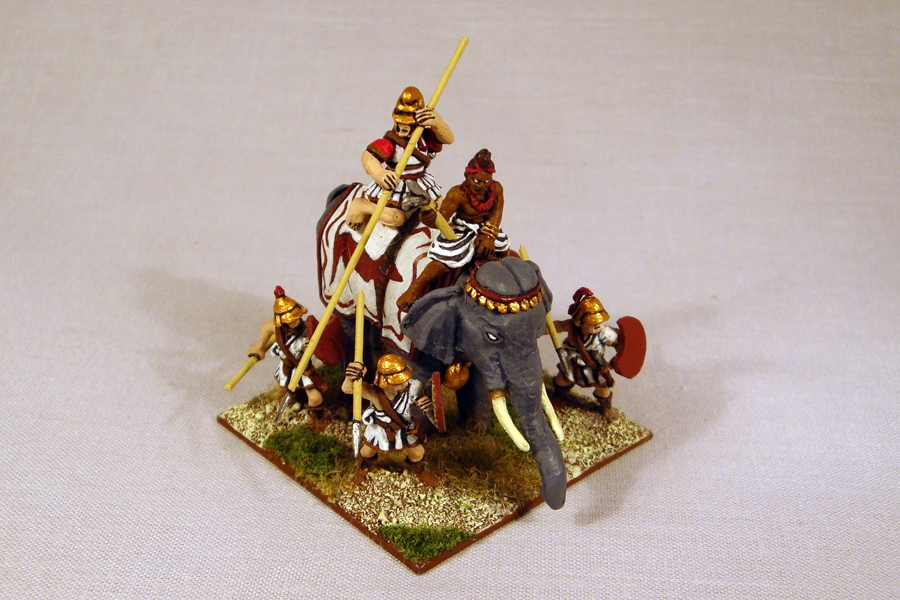 Te han quedado geniales. La idea de los escoltas de los elefantes es muy buena. A pesar de lo grandes que son las bestias, en la peana sola quedan algo desangeladas. Seguramente haga algo parecido si me compro elefantes para un ejército helenístico.