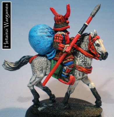 La última mini de samurai a caballlo. Como es el último caballo que pinto (y que irá en la peana del general) me lo he currado más  ;D