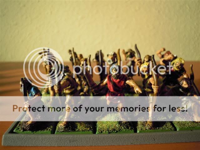 Un amplio contingente de escaramuceadotes de origen griegos: honderos, arqueros, jabalineros...