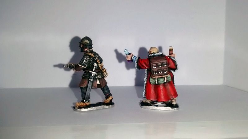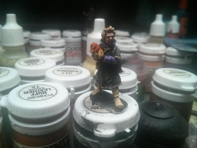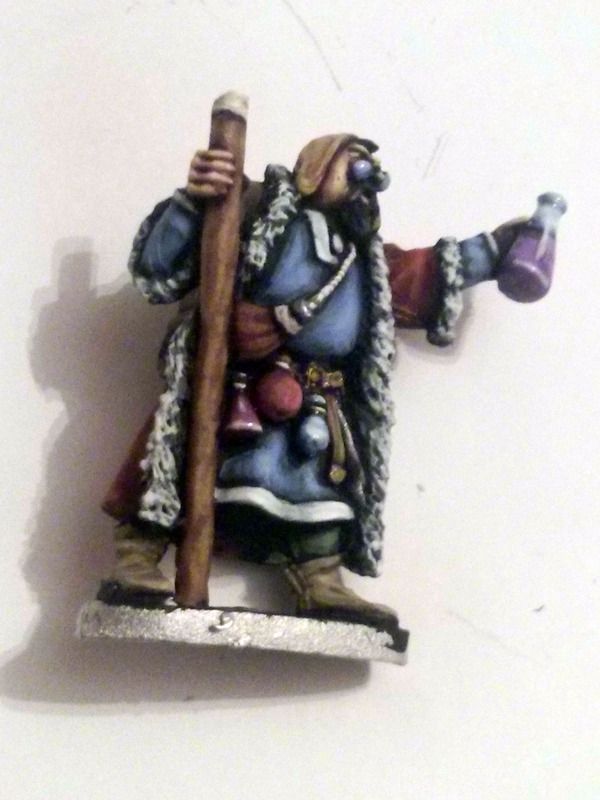 Añado tres fotos más: el marksman (o señor con ballesta, una miniatura más sosa que un guijarro de río), y el apotecario, que es todo lo contrario y que he disfrutado como un enano pintándola. Las fotos son un horror, pero os aseguro que en mano ganan mucho :D