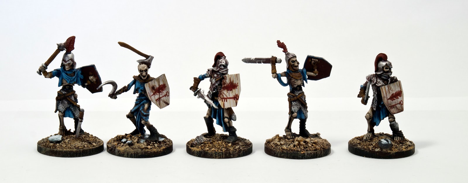 Hola de nuevo a todos. Voy a actualizar el hilo con un puñado de esqueletos para Frostgrave. Como podéis ver han sido pintados para parecer una unidad mas o menos uniformada, en concreto serán los guardias de la Gran Biblioteca de Felstad.