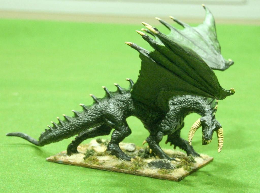 Una cosa que me ha pasado con ellos (y creo que ya lo han mencionado por aquí) es que me quedan pegajosos. Con el Cthulhu de Reaper me pasa lo mismo y sigue así a pesar del tiempo que ha pasado desde que lo terminé.  Al principio pensé que era el barniz, algo que estuviera mal. Pero estuve comentándolo con Raúl-TOW y me confirmó que el suyo adolecía de lo mismo y sólo estaba imprimado. Con los dragones pasa lo mismo y debe ser por el material poroso del que están hechas la minis (salvo las alas del mecánico, que son de plástico rígido). El fenicio Gehiegi me lo confirmó. Así que si pintáis cosas de Reaper, cuidado porque en un tiempo no se quitará esa sensación de pegajoso; el material chupa pintura y barniz y luego lo va soltando poco a poco. Cuánto va a tardar en secar totalmente, no puedo decirlo.  :-\