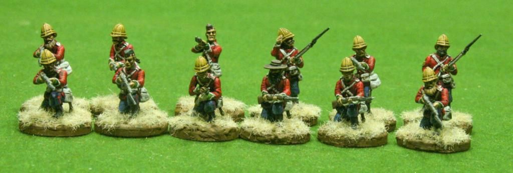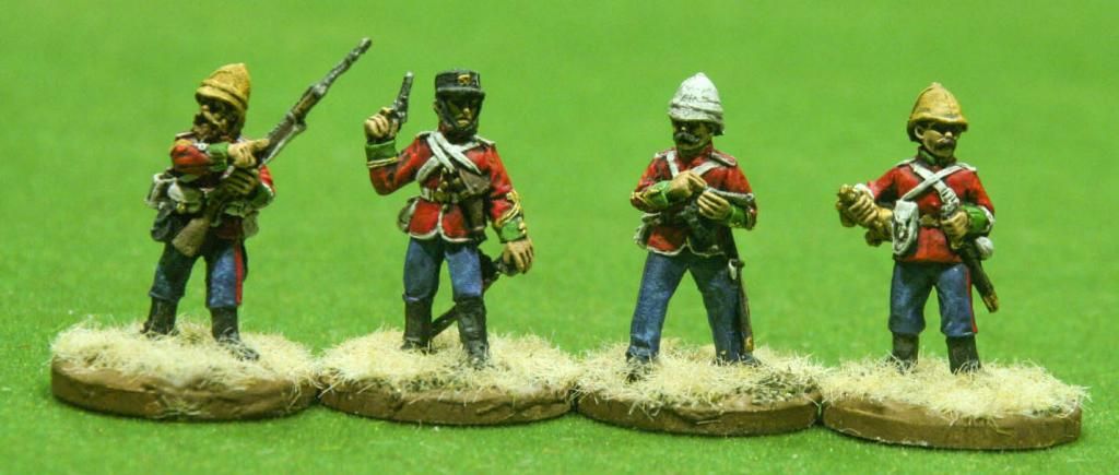 El resto de la banda son soldados de infantería. Pillé la caja de Warlord de su línea de Guerra Anglo-Zulú y me pinté a las minis de plomo y unos cuantos soldados armados con rifle y bayoneta. Evidentemente, son comprarsas, pero nunca subestimes a un comparsa!